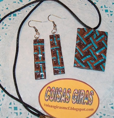 E umas novidades giras... Medalhões em FIMO, com fio de seda, para usar junto ao pescoço. Alguns têm os brincos a condizer. Muitas variedades e todos peças únicas. Aproveitem!